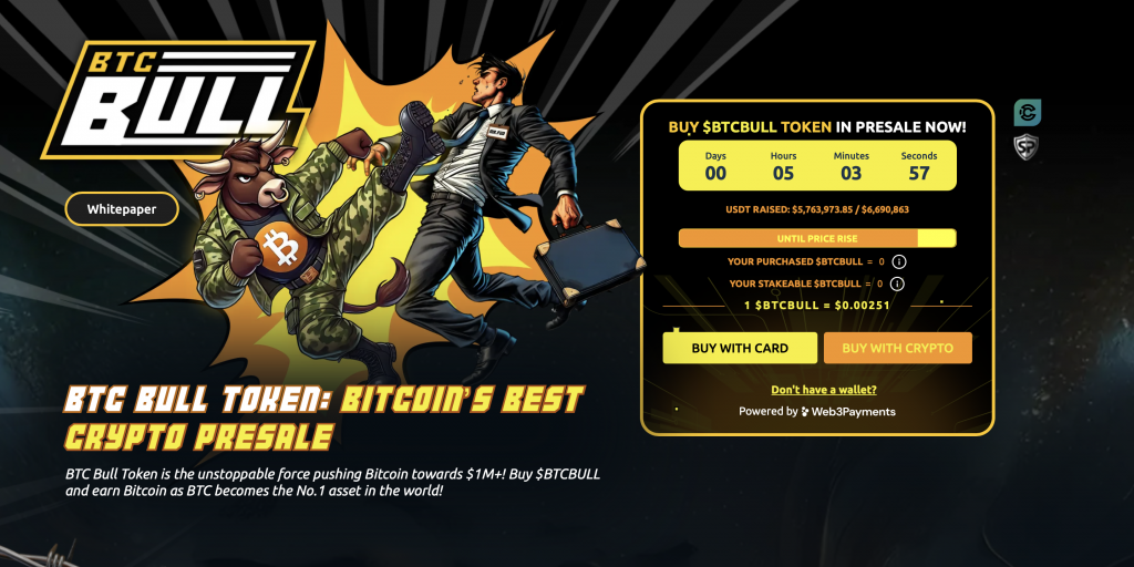 Das Konzept überzeugt Investoren, sodass die Nachfrage schon jetzt explodiert. Obwohl der $BTCBULL-Token noch gar nicht an den Kryptobörsen gehandelt wird und noch im Vorverkauf erhältlich ist, haben Anleger bereits 5,7 Millionen Dollar investiert, um vor dem Launch dabei zu sein. Damit wird schnell klar, dass $BTCBULL nach dem Launch eine Kursexplosion hinlegen könnte, wobei einige Analysten auch einen Anstieg um weit mehr als 500 % für möglich halten.