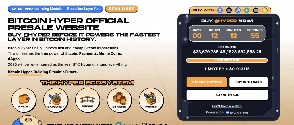 ($HYPER Token-Vorverkauf – Quelle: Bitcoin Hyper Website