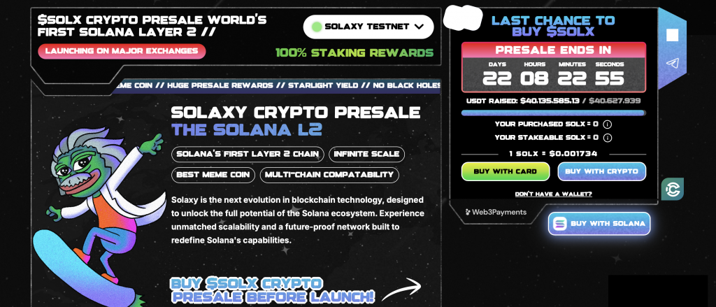 Jetzt rechtzeitig einsteigen und $SOLX im Presale kaufen.