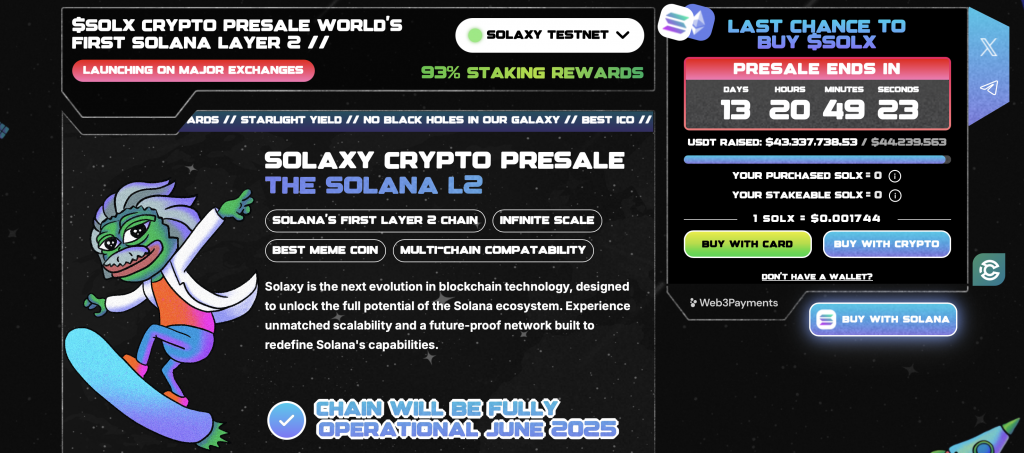 Genau hier setzt Solaxy an. Mit der Einführung einer eigenen Layer 2 schafft das Projekt die technische Grundlage für ein stabiles, skalierbares Solana-Ökosystem, das auch in Hochphasen zuverlässig funktioniert. Dabei bleiben die bekannten Vorteile von Solana wie schnelle Verarbeitung und minimale Kosten erhalten. Gleichzeitig eröffnet die Layer 2 ganz neue Möglichkeiten, ähnlich wie es Ethereum mit der Base Chain vorgemacht hat. Auch auf Solaxy könnten sich schnell neue Token und Anwendungen etablieren, wobei der native Token $SOLX eine zentrale Rolle spielt.