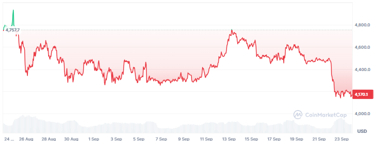 Für Ethereum ging es in den vergangenen Tagen deutlich abwärts, in Richtung der wichtigen Marke von 4.000 US-Dollar, doch der Widerstand hält. Damit steht die zweitgrößte Kryptowährung innerhalb von einer Woche um 5,5 Prozent im Minus, gefolgt von einem Verlust in Höhe von 12,5 Prozent innerhalb von einem Monat. Auch bei Ethereum ist die Entwicklung stark in Abhängigkeit von der Nachfrage nach den jeweiligen Spot-ETFs am Markt. Die Marktkapitalisierung liegt darüber hinaus bei knapp über 500 Milliarden US-Dollar.