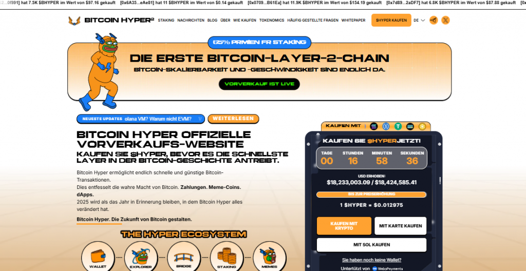 Bitcoin Hyper erreicht 18 Millionen US-Dollar!
