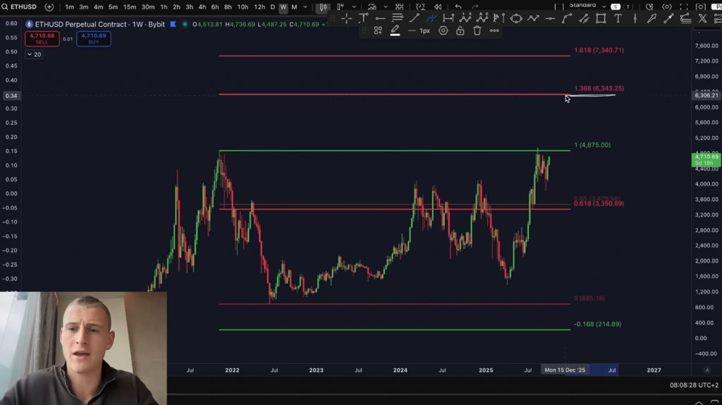 Ethereum liefert aktuell das Setup, auf das Trader seit Wochen gewartet hatten. Die langgezogene Bull-Flag ist nach oben durchbrochen, ein klassisches Zeichen für den Start einer neuen Aufwärtsphase. Laut Crypto Rover, einem der bekanntesten Analysten auf YouTube, steht damit eine parabolische Bewegung bevor. Im Chart zeigt sich das klassische Bild: steiler Impuls, enge Konsolidierung, anschließender Breakout. Aus der Flaggenhöhe lässt sich ein Ziel um 6.500 US-Dollar ableiten.