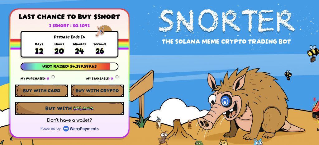 Für wenige Tage haben Anleger noch die Möglichkeit, $SNORT im Presale zum günstigen Fixpreis zu kaufen. Dabei wurden schon jetzt fast 4,4 Millionen Dollar umgesetzt, was schnell deutlich macht, dass hier etwas Großes entstehen könnte. Analysten vermuten, dass sich der Trading Bot schnell verbreitet, was auch die Nachfrage nach dem $SNORT-Token erhöhen würde, weshalb einige von einer Kursexplosion von bis zu 1.000 % nach dem Launch ausgehen.