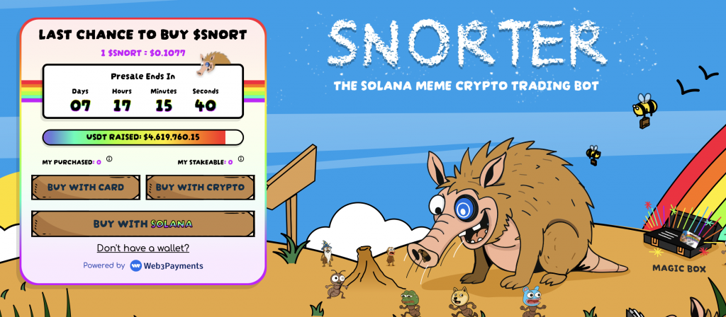 Der Bot dürfte sich am Markt schnell durchsetzen, da er eine breite Zielgruppe anspricht, den Handel mit Meme Coins einfacher und effizienter gestaltet und mit niedrigeren Gebühren als die Konkurrenz überzeugt. Das dürfte auch die Nachfrage nach dem $SNORT-Token ankurbeln, sodass es sich hier um einen der Top Performer der nächsten Wochen handeln könnte.