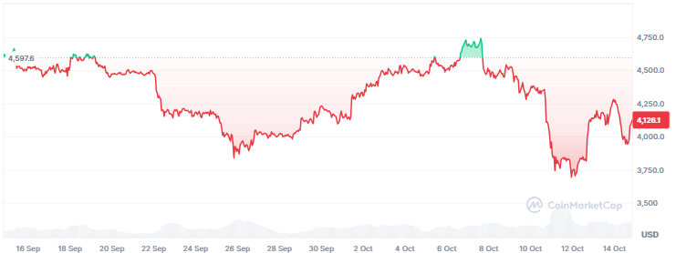 Auch für die zweitgrößte Kryptowährung ging es in den letzten Tagen deutlich abwärts, um genauer zu sein um mehr als 8 Prozent in den letzten sieben Tagen. Direkt daran knüpft ein Monatsverlust von 11 Prozent an. Damit pendelt der ETH-Token nur noch knapp über 4.000 US-Dollar. Sollte es zum Bruch nach unten kommen, könnte es binnen kürzester Zeit zu einem Fall auf 3.500 US-Dollar kommen. Der Fokus ist dabei auf die institutionellen Investoren gerichtet, die zuletzt das Geschehen rund um Ethereum maßgeblich beeinflussen.
