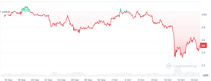 Während der BNB-Token sehr gute Tage erlebt, geht es beim XRP-Token genau gegenteilig zur Sache. In mehreren Schritten ging es auf den Support bei 2,50 US-Dollar zurück, wodurch der Altcoin auf Platz 5 aller Kryptowährungen, gemessen an der Marktkapitalisierung, zurückfällt. Ein großer Gamechanger könnte in diesem Zusammenhang die Auflage eines ersten XRP-Soot-ETFs in den USA sein, welche schon seit längerem sehnsüchtig von der Community erwartet wird, nachdem der Rechtsstreit vor wenigen Wochen sein finales Ende gefunden hat.