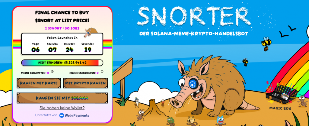 Snoter hat schon 5,3 Millionen im Presale, Quelle: https://snortertoken.com/de