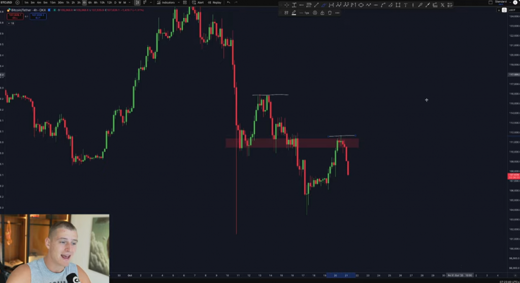 Das aktuelle Chartbild beschreibt er als typische Kompressionsphase mit fallenden Hochs und steigenden Tiefs. Solche Formationen gelten als Vorläufer größerer Bewegungen. Für Rover entscheidet sich nun alles an der Marke um 106.000 US-Dollar. Sollte diese Zone brechen, erwartet er eine Ausdehnung des Abverkaufs in Richtung 100.000 US-Dollar. Hält die Unterstützung dagegen, rechnet er mit einem Rücklauf bis 112.000 US-Dollar.