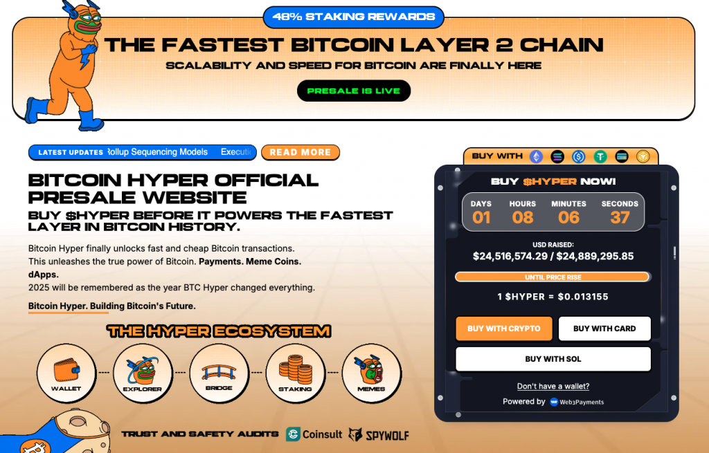 Bis jetzt kamen bereits über 24,5 Millionen $ an Presale-Funding für das junge Projekt zusammen. Die im Vorverkauf erworbenen Coins können im Anschluss zudem auch für eine jährliche Rendite von bis zu 48 % gestakt werden. Das große Investitionsinteresse kann maßgeblich darauf zurückgeführt werden, dass die Entwickler von Bitcoin Hyper das Ziel verfolgen, die erste Layer-2-Blockchain für Bitcoin auf den Markt zu bringen.