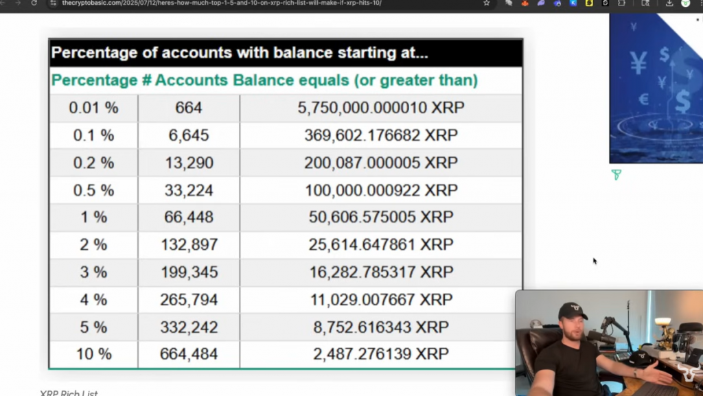 Die Diskussion um XRP und den Weg zur ersten Million flammt wieder auf. Besonders die aktuelle Rich List zeigt, wie sich die Besitzverhältnisse verteilen und welche Größenordnungen eine Rolle spielen. Etwa zehn Prozent aller Wallets halten mindestens 2.487 XRP. Wer zu den oberen fünf Prozent gehören will, braucht rund 8.750 XRP. Für den Ein-Prozent-Bereich sind bereits über 50.000 XRP nötig, und die absolute Spitze von 0,1 Prozent beginnt bei rund 369.000 XRP. Diese Zahlen wirken auf den ersten Blick hoch, doch sie liefern ein realistisches Bild davon, wie konzentriert das Vermögen in der XRP-Community verteilt ist.