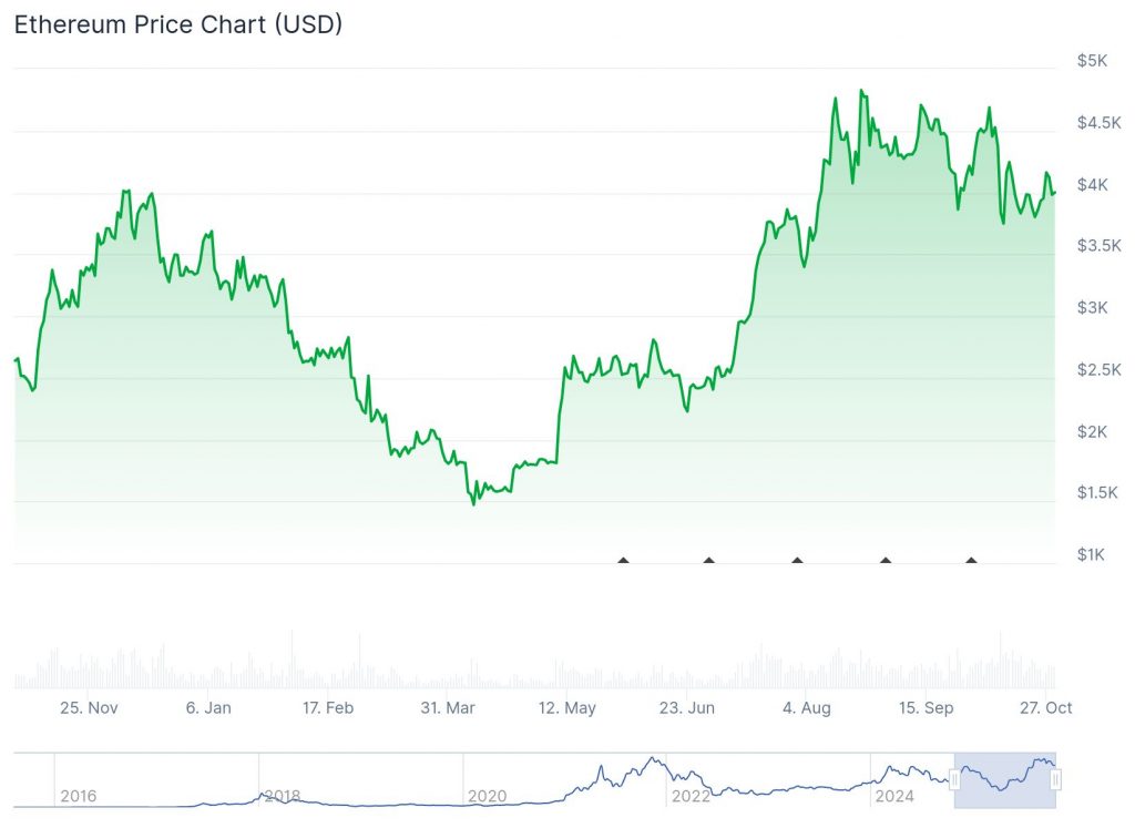 Ethereum hat gerade erst wieder 4000-$-Marke überschritten