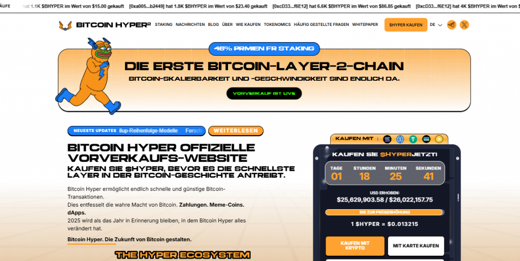 Es besteht kein Zweifel daran, dass Bitcoin Hyper zu den aufstrebenden Kryptowährungen am Krypromarkt gehört, was auch ChatGPT bestätigt. Das Potenzial, das damit in Verbindung steht, wird als äußerst hoch eingestuft. Ein wesentlicher Faktor dabei ist die derzeit noch geringe Marktkapitalisierung des Tokens, die bei initialem Börsenlisting im unteren Millionenbereich liegen wird. Doch es sollte nicht viel Zeit verstrichen werden, denn der Kaufpreis für einen Token steigt in regelmäßigen Abständen an, ein weiteres Mal bereits in rund zwei Tagen.