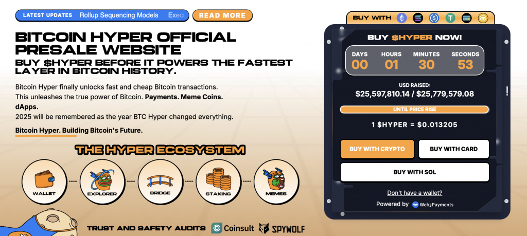 Im Zentrum der neuen Layer-2-Lösung steht der $HYPER-Token, der für Transaktionen, Liquiditätspools und vieles mehr benötigt wird. Aktuell haben Anleger noch die Möglichkeit, $HYPER im Presale zum günstigen Fixpreis zu kaufen und laut einigen Prognosen könnte es sich hier um einen der vielversprechendsten Altcoins dieses Jahres handeln. Darauf lässt nicht nur der starke Anwendungsfall, sondern auch die hohe Nachfrage schließen.