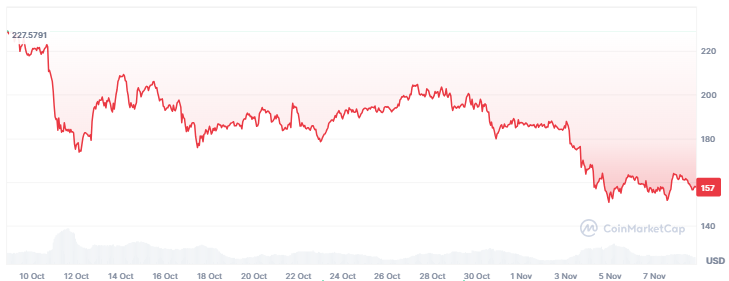 Blickt man an dieser Stelle auf die Entwicklung von Solana, dann ist in den letzten Tagen und Wochen insbesondere eines zu erkennen: starke Turbulenzen im Kurs, die noch immer anhalten. In den vergangenen sieben Tagen steht der Altcoin beispielsweise bei einem Kursverlust von rund 15 Prozent, was die Entwicklung der vergangenen Wochen bestens widerspiegelt. Direkt daran knüpft eine negative Entwicklung von 30 Prozent in einem Monat an, was das Ausmaß der Verkaufte verdeutlicht. Wichtig dabei ist es anzufügen, dass der aktuelle Preis knapp über 150 US-Dollar liegt, was zugleich einen starken Support darstellt. Doch auch zahlreiche andere Kryptowährungen haben zuletzt eine ähnliche Entwicklung an den Tag gelegt.