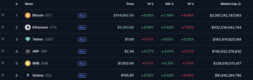 (Top Coins nach Marktkapitalisierung – Quelle: Coinmarketcap)