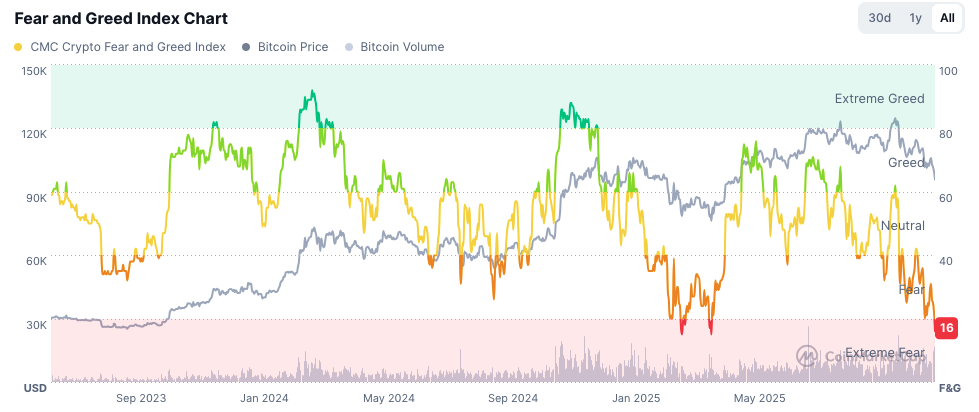 Panik am Kryptomarkt: Fear-and-Greed-Index fällt auf 16 Punkte – Bärenmarkt statt Endjahres-Rallye?