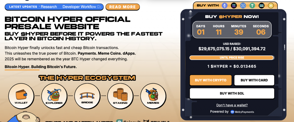 Im Zentrum der neuen Hyper Chain steht der $HYPER-Token, der für Governance, Staking, Liquidität und Transaktionsgebühren benötigt wird. Aktuell ist $HYPER noch im Vorverkauf erhältlich, wobei bereits über 29 Millionen Dollar umgesetzt wurden. Analysten gehen daher davon aus, dass es sich hier um einen der wichtigsten Altcoins im kommenden Jahr handeln könnte.