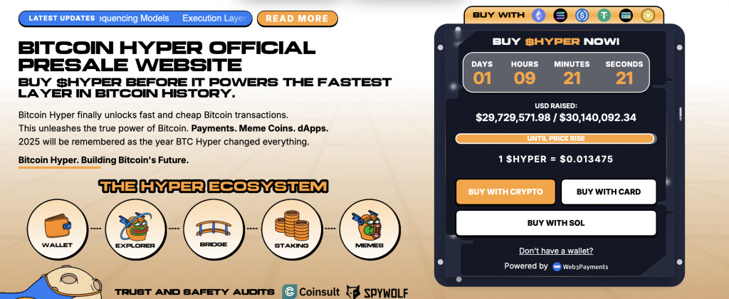 Dass im Presale bereits fast 30 Millionen Dollar eingesammelt wurden, zeigt, wie groß das Interesse ist. Während etablierte Netzwerke mit strukturellen Herausforderungen kämpfen, positioniert sich Bitcoin Hyper frühzeitig als Infrastruktur-Projekt für die nächste Entwicklungsstufe von Bitcoin, mit entsprechend hohem Potenzial für frühe Investoren.
