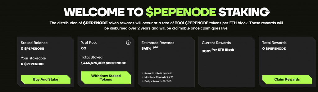 ($PEPENODE Staking Dashboard – Quelle: PepeNode Website)