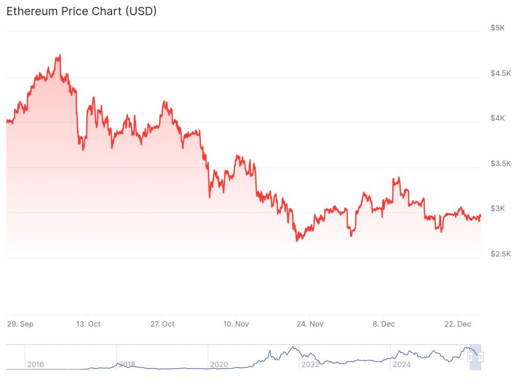 Während die langfristige Roadmap Hoffnung macht, bleibt das aktuelle Marktbild von Ethereum angespannt. Der Kurs bewegt sich weiterhin unterhalb der psychologisch wichtigen 3.000-US-Dollar-Marke und notiert zudem unter dem 200-Tage-EMA, der von vielen Tradern als Trennlinie zwischen Bullen- und Bärenmarkt betrachtet wird. Momentum-Indikatoren spiegeln diese Unsicherheit wider: Der RSI verharrt im Bereich niedriger 40er-Werte, was auf fehlende Aufwärtsdynamik hindeutet, während der MACD kaum klare Impulse liefert.