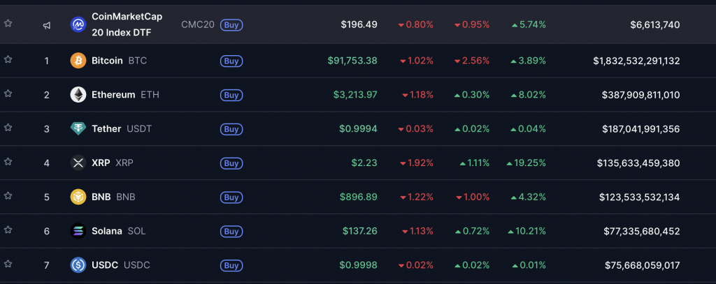 (Top Coins nach Marktkapitalisierung – Quelle: Coinmarketcap)