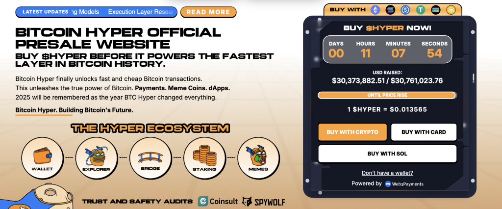 Im Zentrum des Ökosystems steht der $HYPER-Token. Er dient unter anderem als Gebühren- und Infrastruktur-Token der Hyper Chain und ist aktuell noch im Presale erhältlich. Das Interesse ist bereits jetzt außergewöhnlich hoch. In der laufenden Vorverkaufsphase wurden nach Angaben des Projekts bereits mehr als 30 Millionen US-Dollar umgesetzt. Der Tokenpreis steigt dabei stufenweise, wodurch frühe Teilnehmer bereits vor dem offiziellen Marktstart Buchgewinne erzielen.