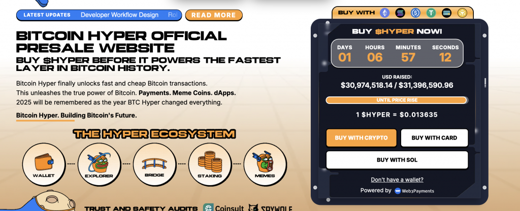 Für viele Investoren passt Bitcoin Hyper damit genau in das Bild eines Marktes, in dem sich Kapital nicht mehr breit über tausende Coins verteilt, sondern zunehmend auf wenige starke Kerninfrastrukturen konzentriert. Der $HYPER-Token ist aktuell noch im Vorverkauf erhältlich und hat inzwischen fast 31 Millionen Dollar umgesetzt, weshalb Analysten davon ausgehen, dass es nach dem Launch zu einer Kursexplosion kommt.