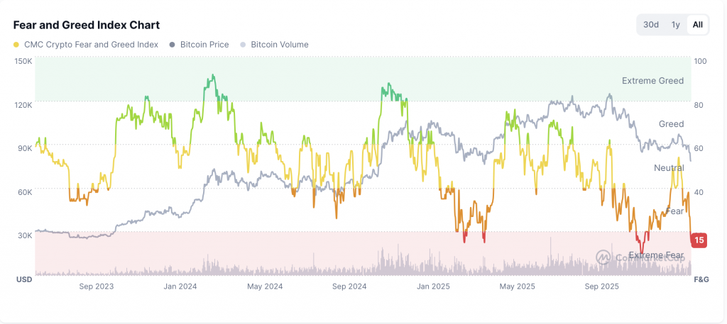 Ein Blick auf den Crypto Fear & Greed Index zeigt, dass die Marktstimmung aktuell im Bereich der “Extreme Fear“ liegt. Historisch betrachtet waren genau solche Phasen häufig der Ausgangspunkt für starke Erholungsbewegungen, nicht selten sogar der Beginn größerer Rallyes.