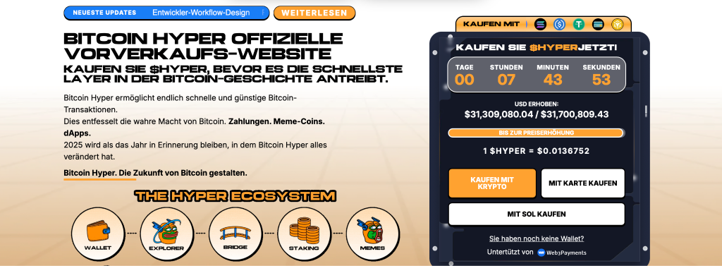 Im Zuge der aktuellen Marktdynamik rücken auch Projekte in den Fokus, die auf der Bitcoin Technologie aufbauen, aber neue Funktionalitäten erschließen. Ein Beispiel dafür ist Bitcoin Hyper. Das Projekt arbeitet an einer Layer 2 Lösung, die Bitcoin um zusätzliche technische Möglichkeiten ergänzt.