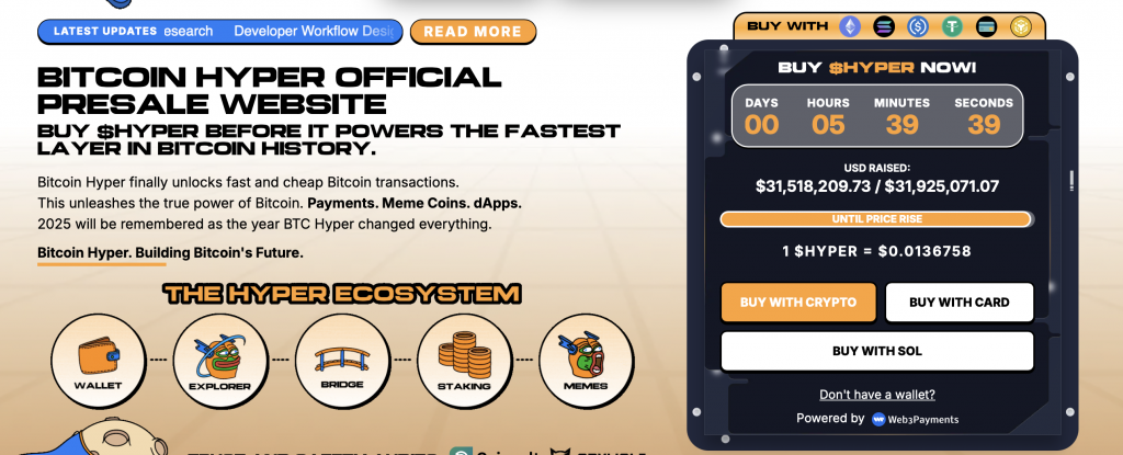 Im Zentrum der neuen Hyper Chain steht der $HYPER-Token, der aktuell noch im Vorverkauf erhältlich ist und schon jetzt über 31,5 Millionen Dollar umgesetzt hat. Die hohe Nachfrage legt die Vermutung nahe, dass der Kurs nach dem Börsenlisting schnell explodieren könnte, wobei einige Analysten von einem Anstieg um mehr als das 10-fache ausgehen.