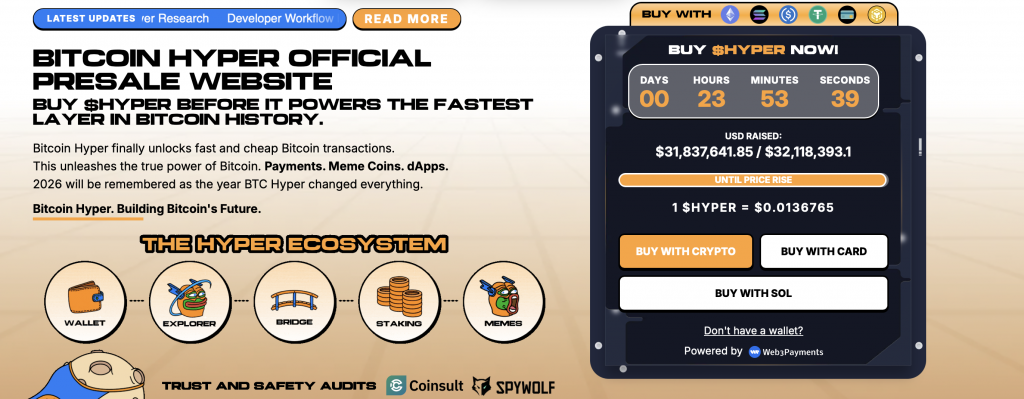 Der HYPER Token übernimmt dabei mehrere zentrale Funktionen innerhalb des Netzwerks, darunter Gebührenmechanismen, Staking sowie Governance Prozesse. Da sich das Projekt aktuell noch in einer frühen Phase befindet, sehen einige Marktbeobachter hier ein potenziell interessantes Wachstumsszenario. Der $HYPER-Token ist noch im Vorverkauf erhältlich und schon jetzt wurden fast 32 Millionen Dollar investiert, weshalb einige Analysten einen extrem Kursanstieg nach dem Börsenlisting erwarten.
