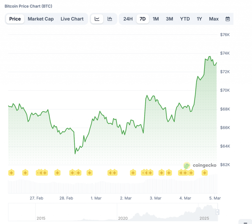 Am gestrigen Handelstag konnte die größte Kryptowährung der Welt deutlich zulegen und zeitweise wieder über die Marke von 72.000 US-Dollar steigen. Auf Wochensicht ergibt sich damit ein Plus von rund sieben Prozent.