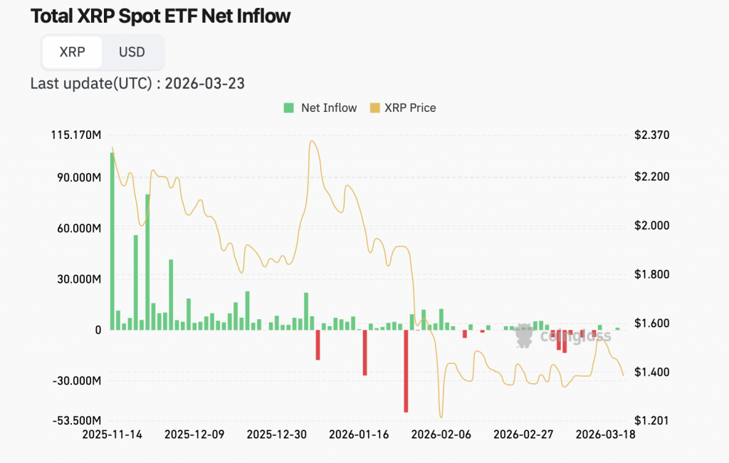Gleichzeitig ist jedoch auffällig, dass sich der Preis zunehmend stabilisiert. Trotz negativer Stimmung kommt es nicht mehr zu starken Abverkäufen. Stattdessen bewegt sich XRP seitwärts in einer enger werdenden Spanne.