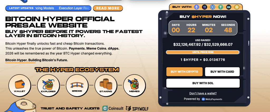 Derzeit ist $HYPER noch im Vorverkauf erhältlich und schon jetzt wurden über 32 Millionen Dollar umgesetzt. Das macht Bitcoin Hyper zu einem der erfolgreichsten Krypto Presales der letzten Jahre, weshalb Analysen eine Kursexplosion nach dem Launch erwarten.