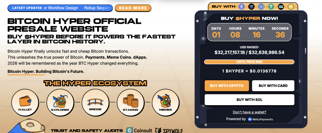 ($HYPER Token-Vorverkauf – Quelle: Bitcoin Hyper Website