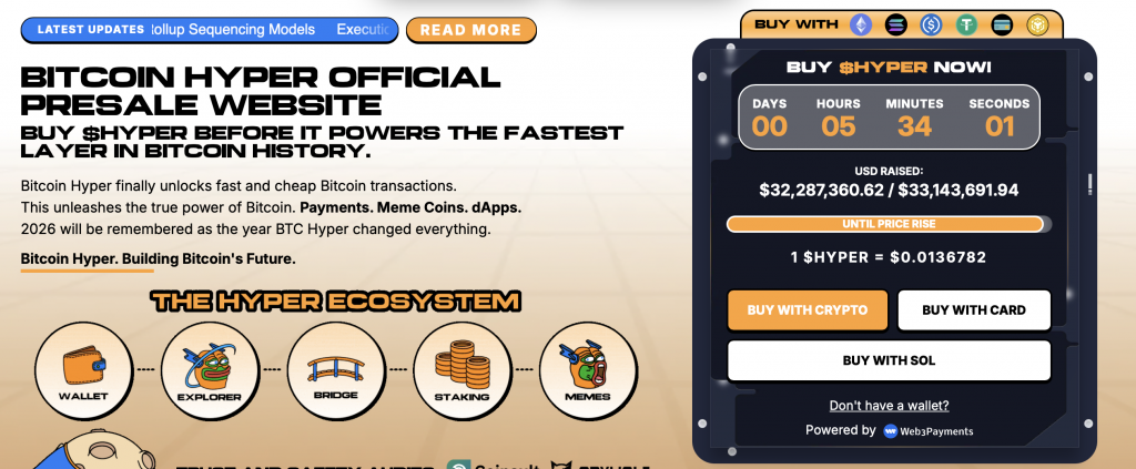 Dadurch könnte Bitcoin langfristig nicht nur als digitales Gold fungieren, sondern auch als Grundlage für ein breiteres Ökosystem dienen. In einem Marktumfeld, das sich zunehmend weiterentwickelt, könnten solche Lösungen eine wichtige Rolle spielen. Der $HYPER-Token ist derzeit noch im Vorverkauf erhältlich und die Prognosen der Analysten überschlagen sich bereits.