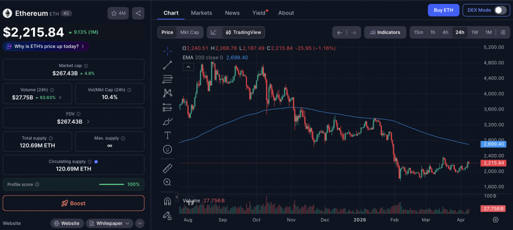 Ein Blick auf den Kursverlauf zeigt, dass Ethereum nach einer längeren Korrekturphase aktuell in einer Seitwärtsbewegung stabilisiert. Der Bereich um etwa 2.000 bis 2.200 US-Dollar fungiert dabei als wichtige Unterstützungszone.