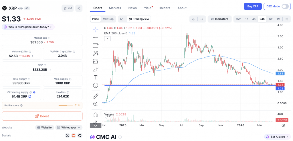 Charttechnisch befindet sich XRP an einem kritischen Punkt. Die Zone um 1,30 US-Dollar fungiert aktuell als zentrale Unterstützung. Mehrere Tests dieses Levels wurden bislang erfolgreich verteidigt.