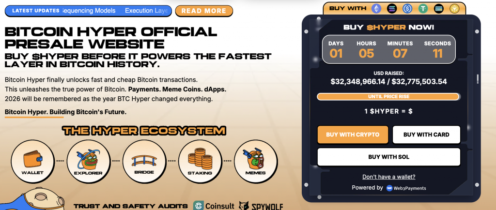 Der dazugehörige $HYPER-Token ist derzeit noch im Vorverkauf erhältlich und hat schon in dieser frühen Phase über 32 Millionen Dollar umgesetzt. Analysten gehen daher davon aus, dass es nach dem Listing an den Börsen schnell zu einem massiven Kursanstieg kommen könnte. Einige sprechen bereits von einem der wichtigsten Altcoins in diesem Jahr.