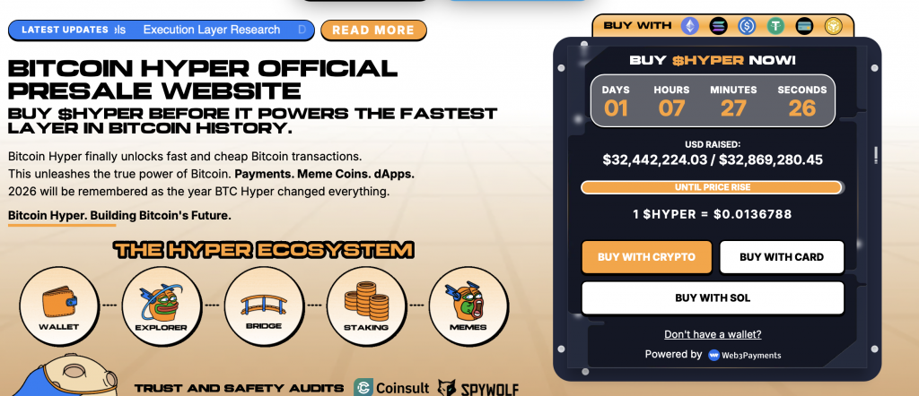 Ein Beispiel dafür ist Bitcoin Hyper ($HYPER). Das Projekt verfolgt das Ziel, die Sicherheit und Stabilität von Bitcoin mit modernen Anwendungsmöglichkeiten zu verbinden. Durch die Integration der Solana Virtual Machine als Ausführungsebene sollen komplexe Anwendungen wie DeFi auch auf Bitcoin möglich werden – jedoch auf einer stabileren Grundlage.