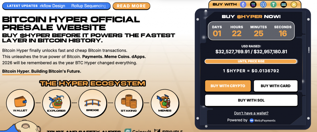 Der $HYPER-Token befindet sich aktuell im Vorverkauf und hat bereits hohe Kapitalzuflüsse verzeichnet. Sollte Bitcoin tatsächlich in Richtung neuer Allzeithochs steigen, könnten auch solche Projekte profitieren, da sie zusätzliche Anwendungsfälle und neue Liquidität in das Ökosystem bringen. Einige Analysten halten bei Bitcoin Hyper sogar einen Kursanstieg um weit mehr als das 20-fache für möglich, da die Nachfrage schon während des Presales extrem hoch ist.