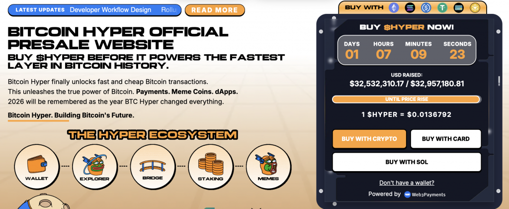 Ein Beispiel dafür ist Bitcoin Hyper ($HYPER), ein Projekt, das darauf abzielt, die Funktionalität von Bitcoin deutlich zu erweitern. Durch die Integration der Solana Virtual Machine soll es möglich werden, schnelle und kostengünstige Transaktionen sowie DeFi-Anwendungen direkt auf Bitcoin zu bringen und so auch auf Bitcoin Zinsen zu verdienen.